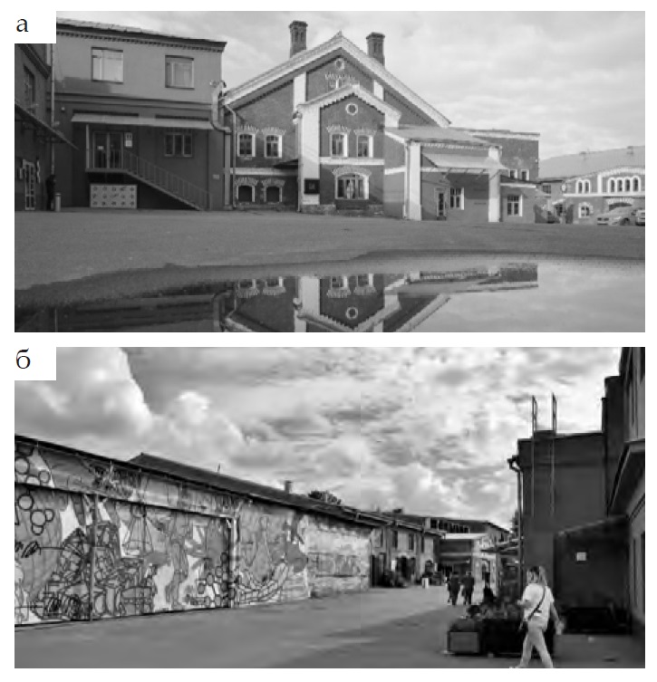 Бывший пивоваренный завод благодаря его приспособлению стал центром современного искусства в Москве. Фасады сооружений комплекса максимально сохранены в своём историческом виде, современный вид достигается за счет граффити и рекламных афиш выставки (рис. 5).
