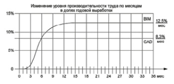 Рис. 1. Увеличение производительности труда при внедрении BIM проектирования [22]