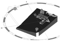 В данный критерий входит поддержка проектирования систем освещения и осветительных установок (ОУ), моделирование кривой силы света (КСС), моделирование траектории Солнца (рис. 3), расчет средней предполагаемой освещенности и визуализация искусственного и естественного освещения. Перечисленные возможности важны для решения светотехнических задач по повышению эффективности использования электроэнергии и ее экономии.