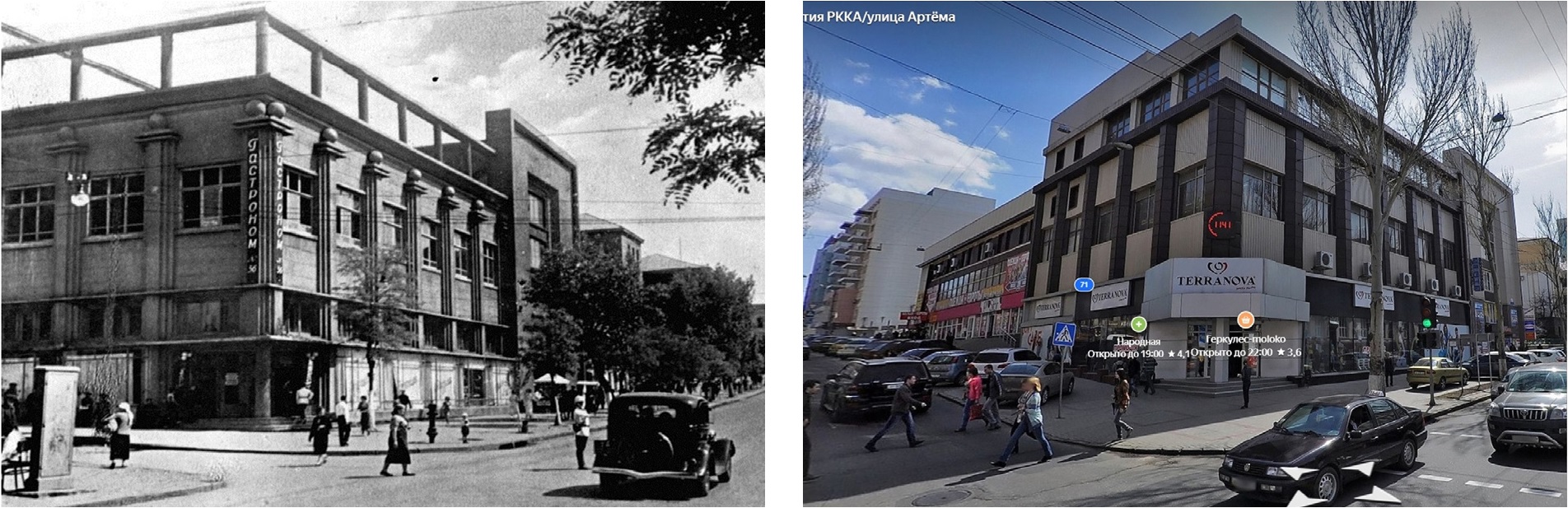 Исследование разных материалов не привело к вновь выявленным объектам общественного питания – фабрикам-кухням, но удалось получить описание полифункционального объекта, схожего по функции с фабрикой-кухней – ресторана-гастронома «Москва», расположенного в самом центре Донецка, на ул. Артема (рис. 11, 12).