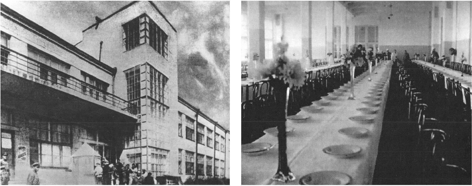 В 1928 г. была открыта фабрика-кухня на Днепрострое – архитекторы В. Веснин, Н. Колли, Г. Орлов, С. Маслих (и Е. Максимова, прим. автора).