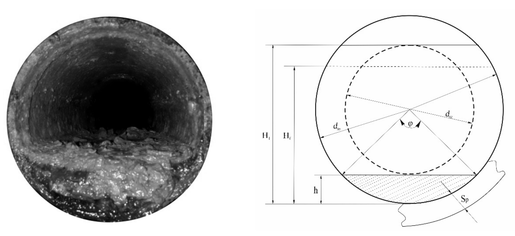 - требуется проведение специальных научно-исследовательских работ на трубах из разного вида материалов для разработки допустимых значений толщины слоя осадка в их лотковой части h для последующей оценки эффективности эксплуатации сети.