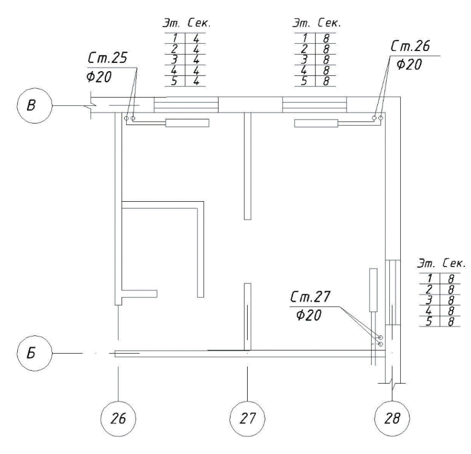 Рис. 3. Фрагмент стены в осях Б-В/28