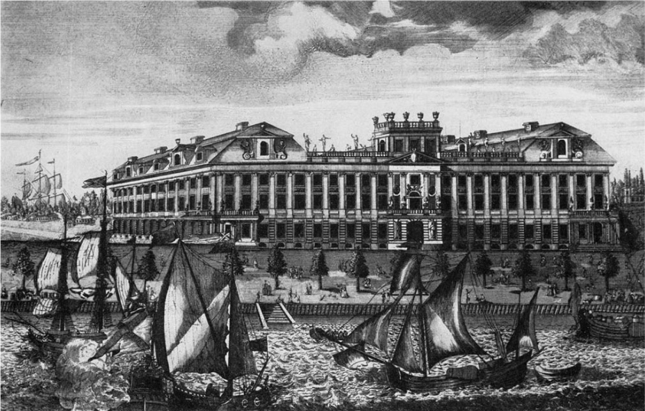 Рис. 6. Гравюра О.Эллигера 1727 года. Итальянский дворец (1720-1727, И.-Ф.Браунштейн). Источник изображения - http://photoprogulki.narod.ru/kronstadt1_3.htm