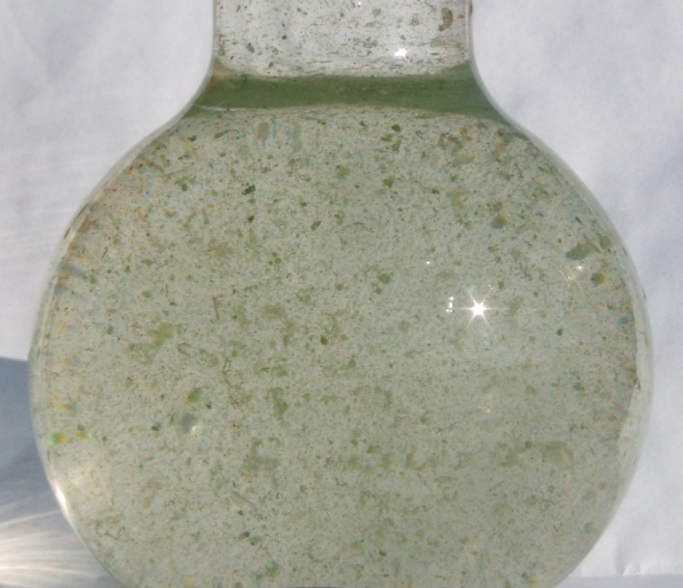 Сине-зеленые водоросли – одноклеточные, нитчатые и колониальные микроорганизмы. На поверхности водохранилища они способны к формированию толстой пленки (рис.1). Бульон из водорослей производит неприятное впечатление (рис.2). Жизненный цикл у одноклеточных форм при оптимальных условиях роста составляет 6-12 часов. Диаметр клеток варьирует от 0,5 до 100 мкм. Некоторые виды водорослей, в частности Микроцистис, являются токсичными. Микроцистис – это главный участник «цветения» воды, вызывающий резкое снижение растворенного кислорода и массовые заморы рыбы.
