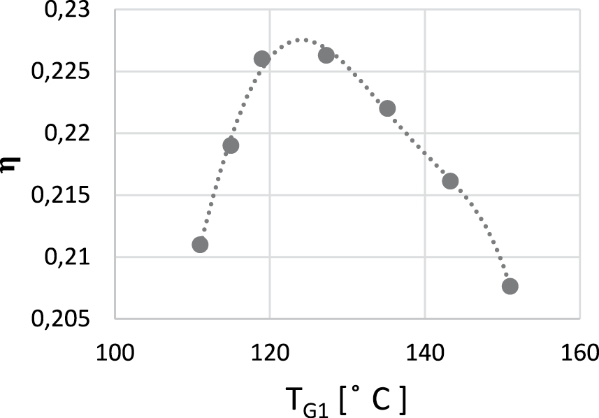 Таким образом, для наибольшего эффекта проектирование должно осуществляться для температуры, соответствующей более высокому значению EER, и температуры, далекой от явления кристаллизации. Поэтому наиболее оптимальной будет схема при проектировании с температурой основного генератора 130 °C, что далеко от температуры кристаллизации и обеспечивает наибольшее соотношение температур 1,52 и эффективность 0,225.