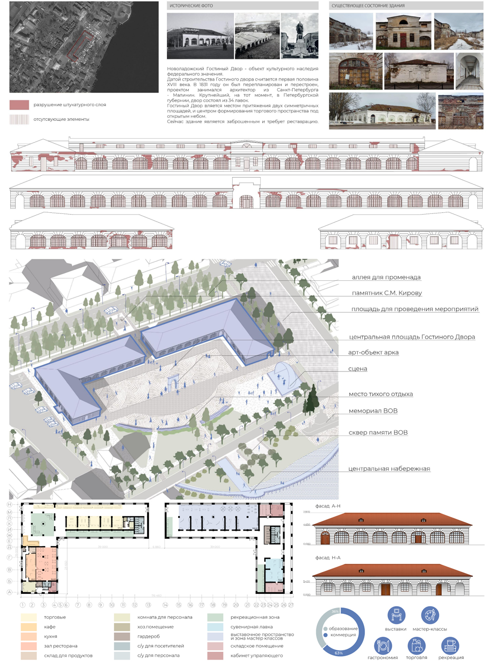 Рис. 9. Предложения по восстановлению и приспособлению ОКН Новоладожский Гостиный двор по адресу пр. Карла Маркса, 29 под современное использование. Разраб. Винокурова А.Г., Кривобороденко В.А., под рук. Перьковой М.В., Ладик Е.И.