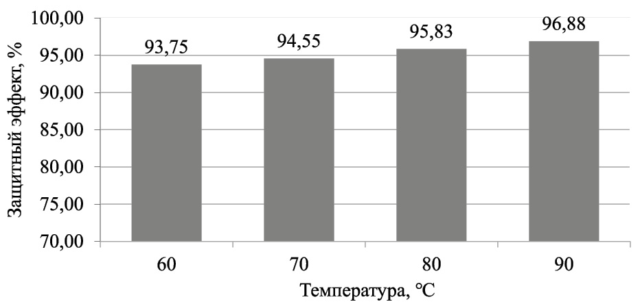 Учитывая качество источника водопотребления, проверку возможности применения ингибиторов на основе ОФ при температуре 60‒90 оС проводили при концентрации по НТФ 0, 5 мг/л. Экспозиционное время составляло 180 мин. Исследования проводили на установке, представленной в [7]. Результаты исследования приведены на рис. 1 и в табл. 2.
