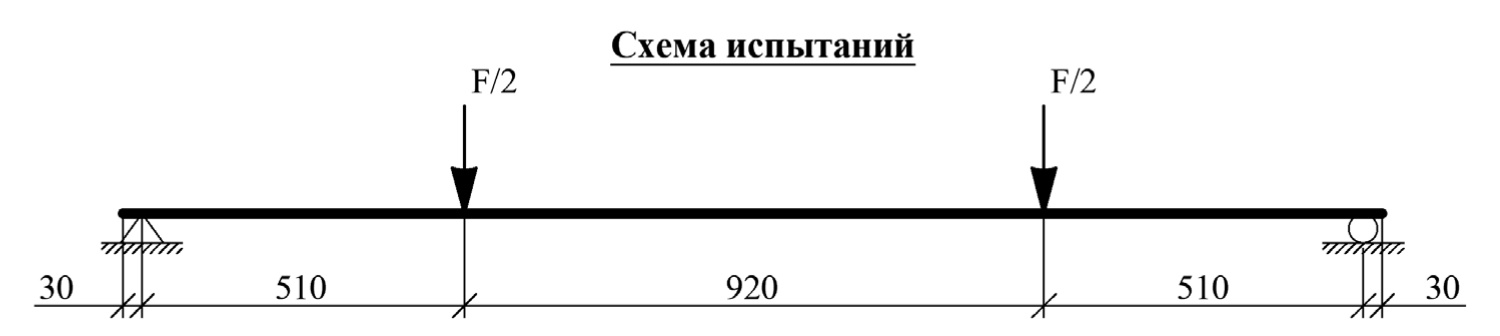 b, h, h0, - ширина, высота, рабочая высота сечений опытных образцов, мм; а ‒ расстояние от равнодействующей усилий в продольной рабочей арматуре до нижней грани образцов соответственно, мм.