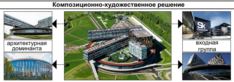 - архитектурного формирования научно-исследовательских объектов, основанных на современных архитектурных приёмах формообразования;