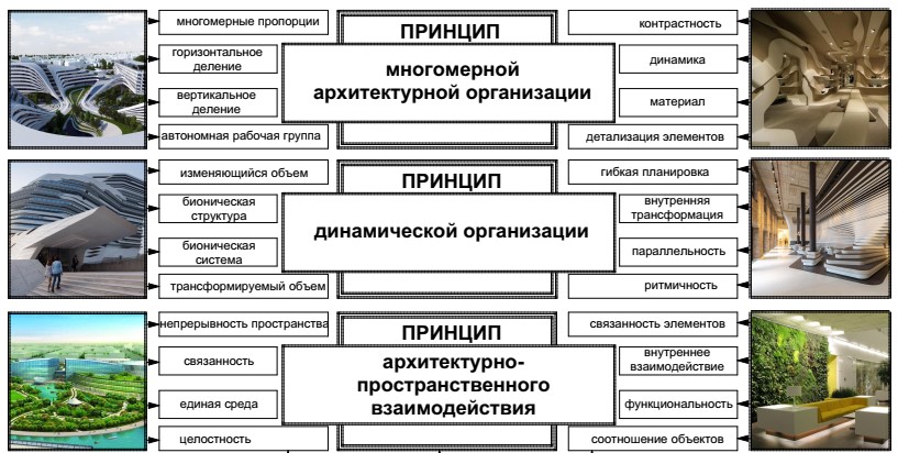 Рис. 5. Классификация основных принципов формирования архитектурных решений научно-исследовательских учреждений нового поколения при реконструкции