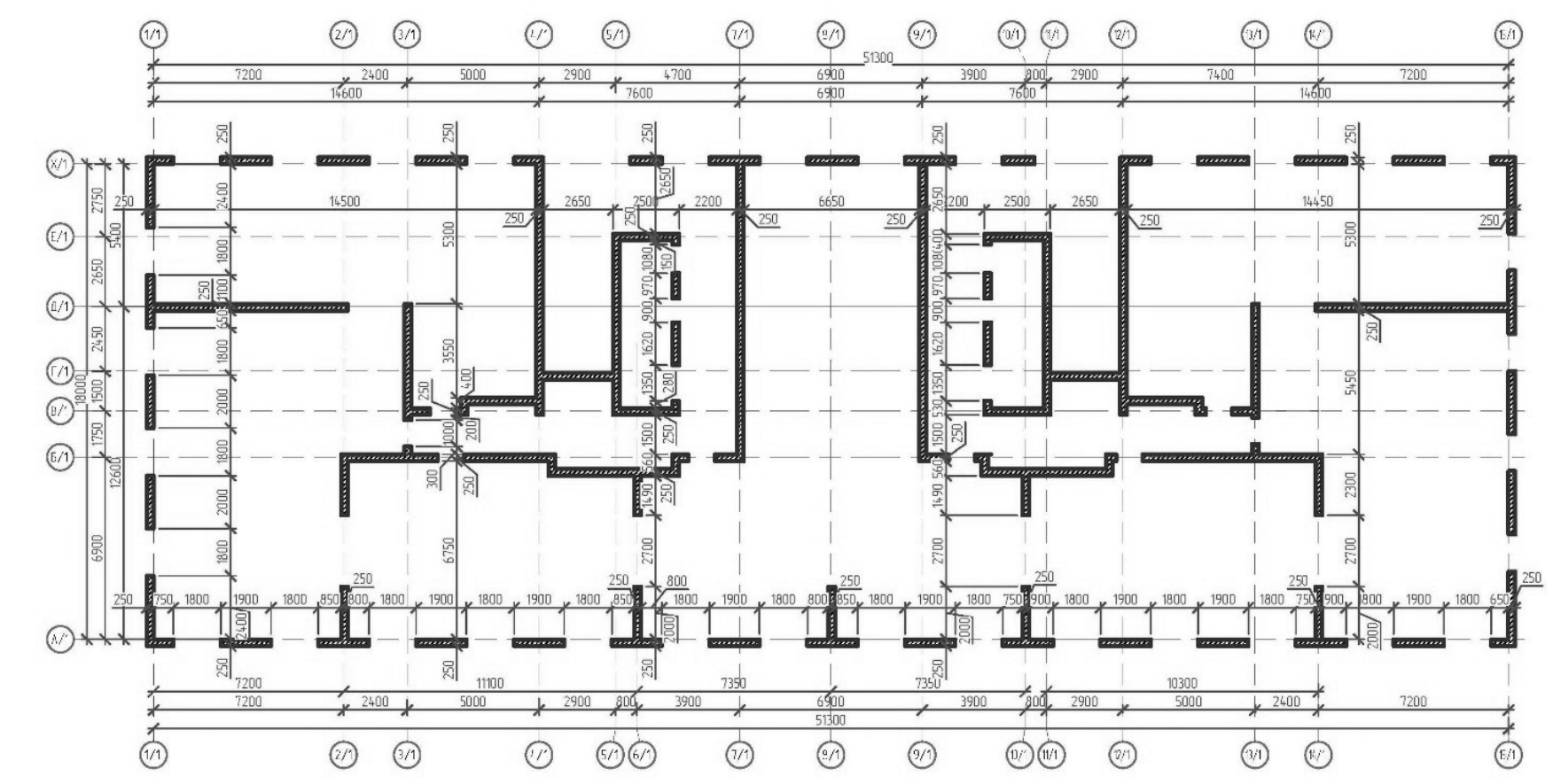 Fig. 7. Layout of vertical load-bearing structures of typical floor at elev. + 3.000