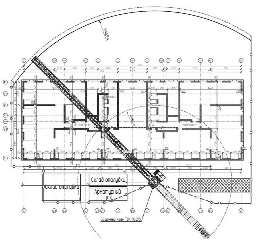 - при строительстве объектов, когда, в соответствии с требованиями правил техники безопасности, проектом организации строительства предусмотрено ограничение поворота стрелы башенного крана [6].
