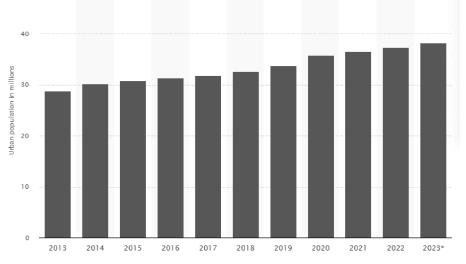 Fig. 2. Vietnam Urban Population 2013-2023 (in millions) [6]