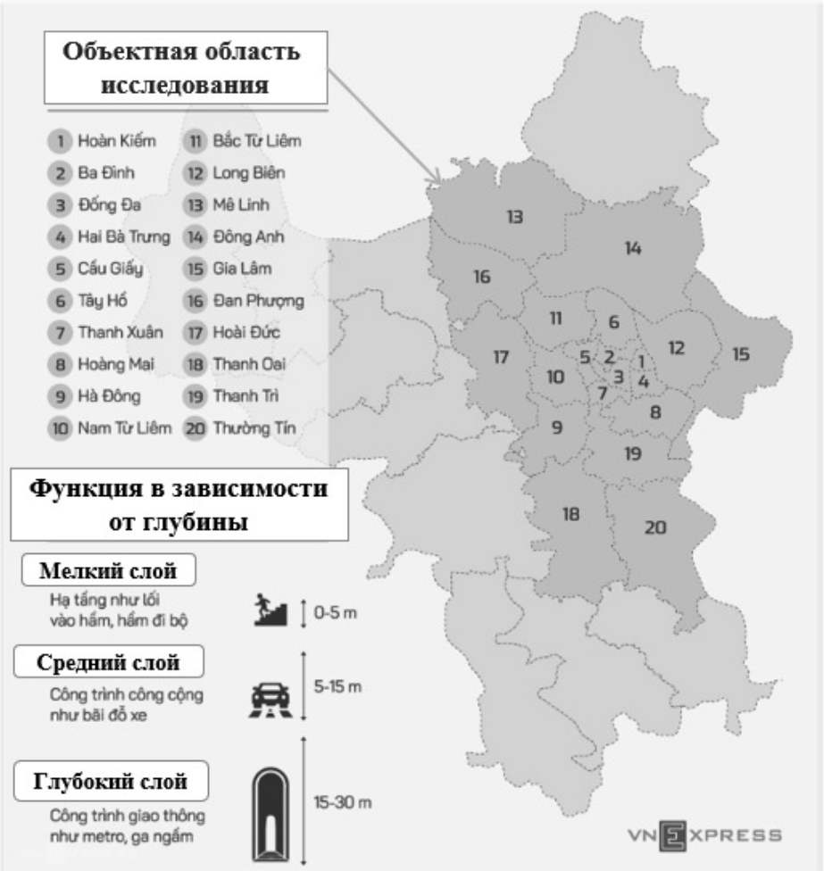 Fig. 3. Planning of underground urban development in the center of the capital city of Hanoi [7]
