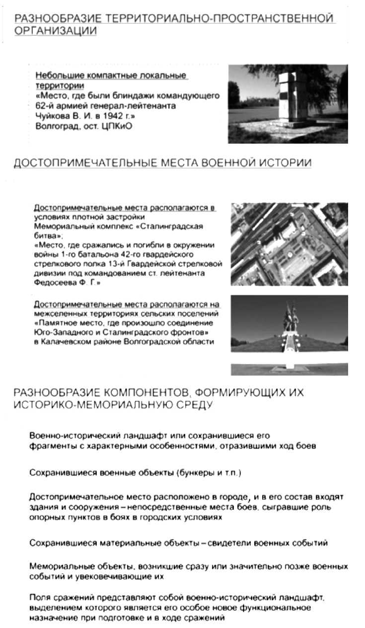 Проанализировав мировой опыт экспонирования объектов военной истории, были определены принципы архитектурно-градостроительной организации объектов военной истории в структуре Волгограда: