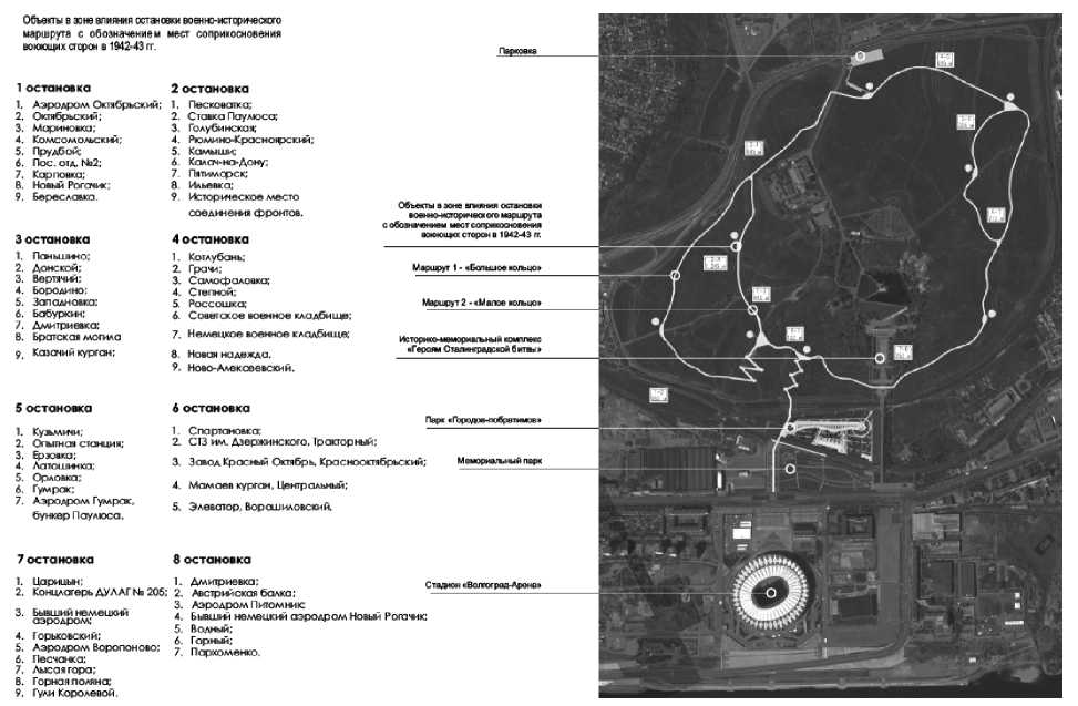 Рис. 4. Концепция градостроительной организации музеефикации объектов военной истории Сталинградской битвы на основе существующих территорий