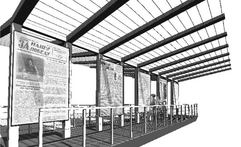 - Предложенная концепция предполагает выявление и использование памятников военной истории и природных территорий как опорных элементов региональной системы экспонирования. Экспозиция предполагает архитектурно-градостроительную структуру, складывающуюся из композиционных центров (центры туристского притяжения) и композиционных осей (туристические маршруты).