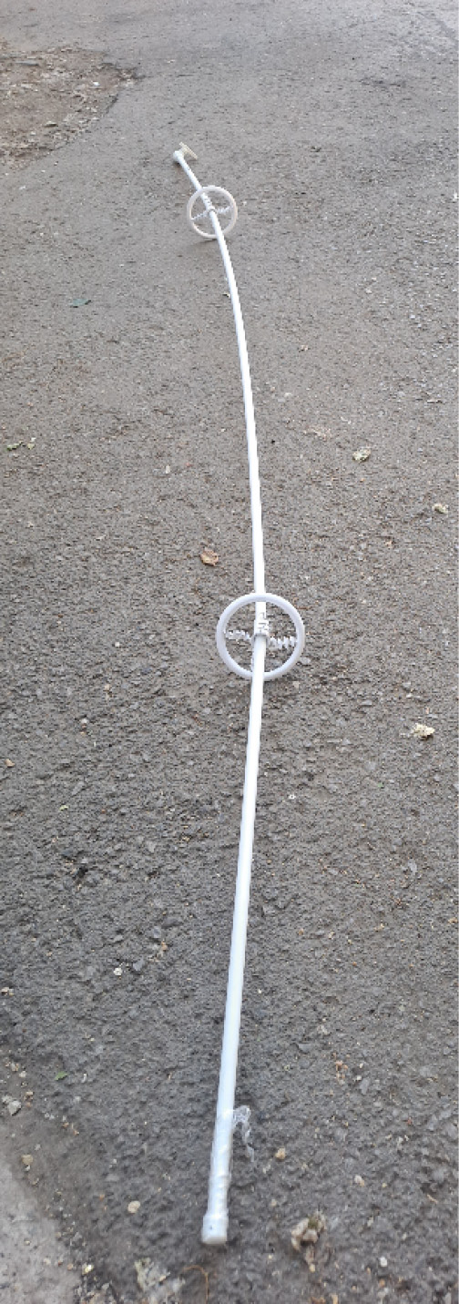 Устройство скважин выполнялось малогабаритной буровой установкой СБГ-ПМ-03. Скважины заполнялись мелкозернистой бетонной смесью с классом бетона по прочности на сжатие В 20. Заполнение скважин производилось при помощи бетонолитной трубы. В скважину для изготовления сваи БСГПУ 30-25 предварительно был установлен инъектор из полипропиленовой трубы с радиальными центраторами. У инъектора имелся запорный шарнирный кран, установленный на верхнем конце. Общий вид и конструкция инъектора показаны на рис. 7 и 8.