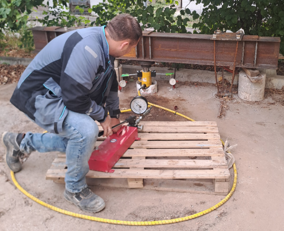 Рис. 10. Испытание вертикальной статической вдавливающей нагрузкой сваи СБГПУ30-25