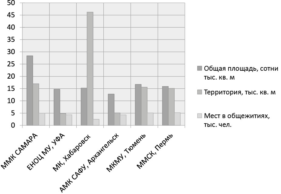 Это связано с тем, что в региональной реальности реализация межуниверситетского кампуса зависит от множества внешних обстоятельств, таких как, например, включенность университетских профилей в стратегии развития субъектов РФ, столиц регионов, число университетов, готовых к участию в проекте кампуса, учет межвузовских взаимосвязей, готовность университетской общественности к принятию концепции открытости кампуса, готовность региона финансово обеспечить кампус инженерными сетями и транспортной инфраструктурой и многое другое. В связи с этим на местах проекты межуниверситетских кампусов получили различное по функционалу воплощение [11‒13].