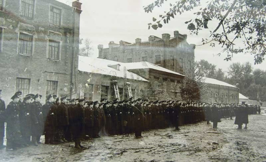 Fig. 3. Pupils of the school of factory apprenticeship (FZU) No. 1. The 1940s. The buildings of the former brewery I.I. Bodalyov. Izhevsk [13]