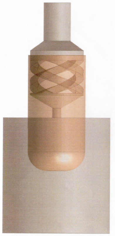 Рис. 1. Центробежная форсунка: 1 ‒ входной патрубок; 2 ‒ шнековый завихритель; 3 ‒ камера закручивания; 4 ‒ выходное сопло