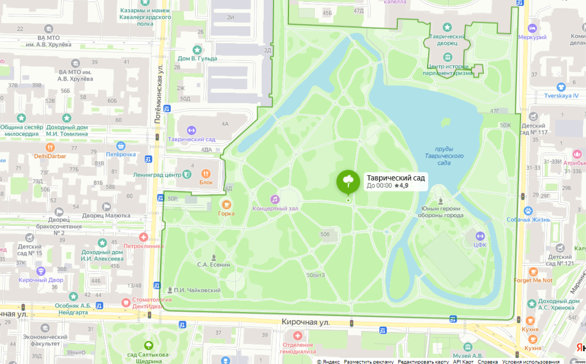 Рис. 2. Первый участок исследований снежного покрова Санкт-Петербурга – парк «Таврический сад»