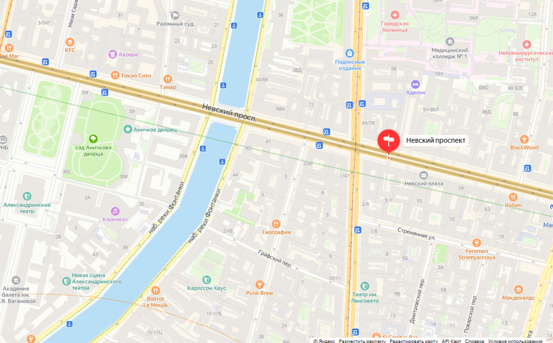 Рис. 3. Второй участок исследований снежного покрова Санкт-Петербурга – Невский проспект