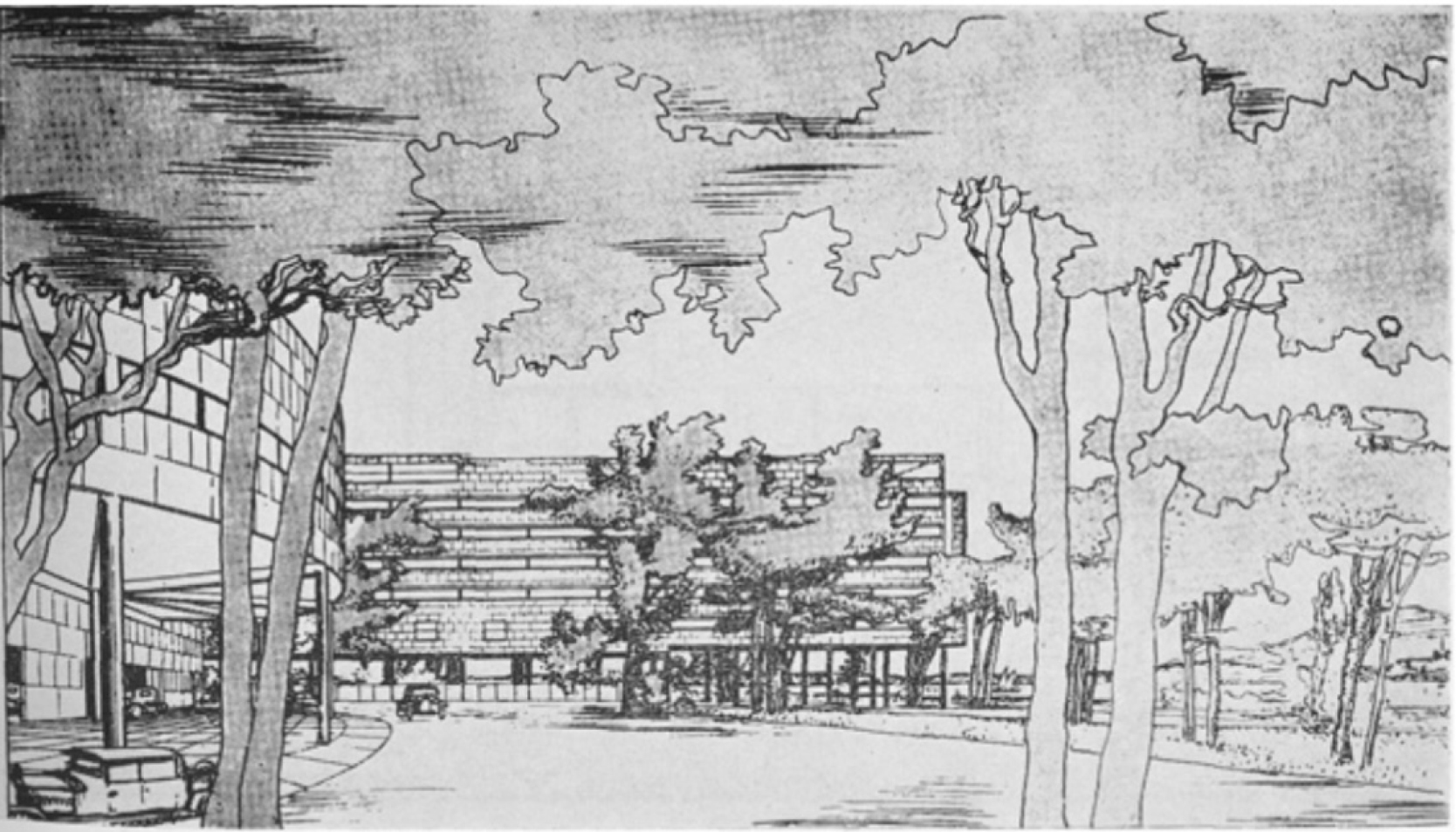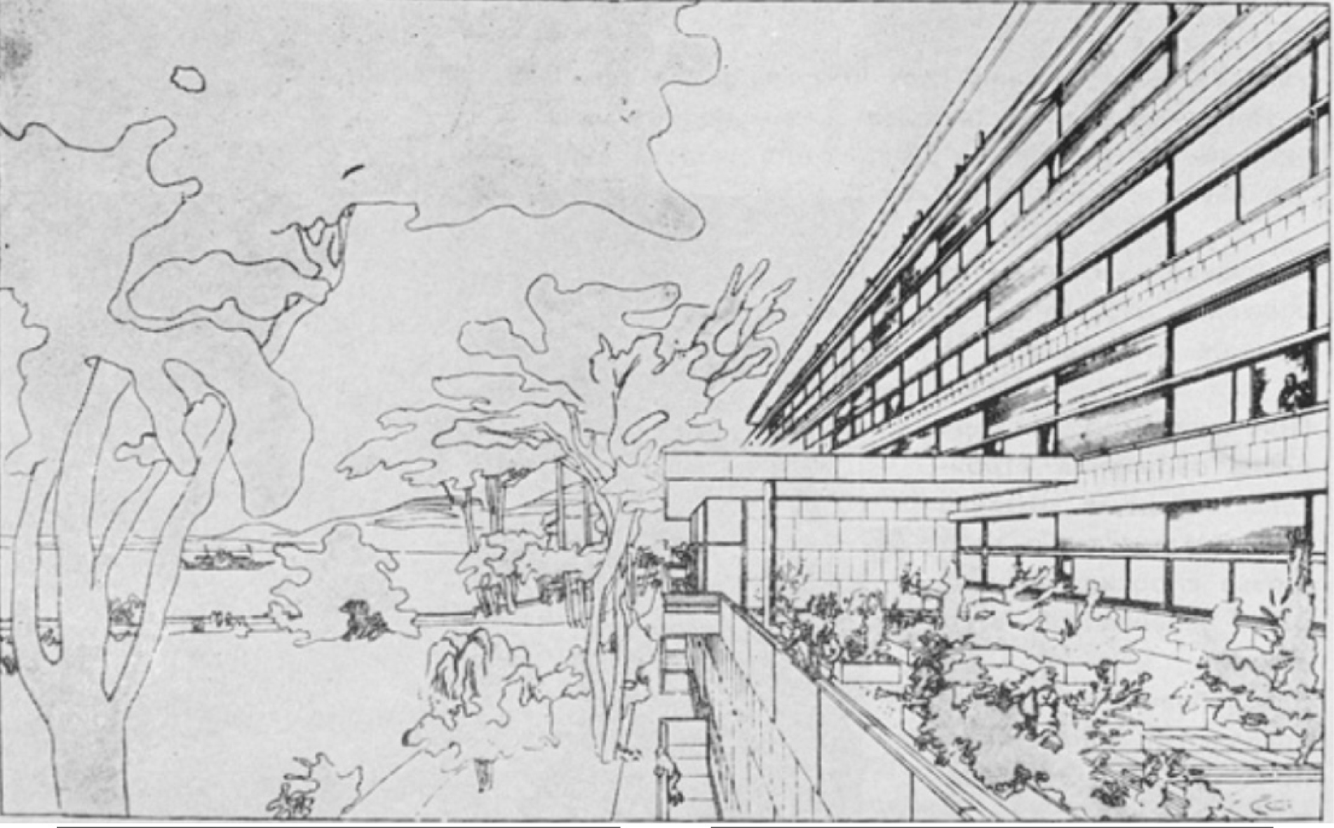 Рис. 1. Графический эскиз Ле Корбюзье. Конкурсный проект Лиги Наций в Женеве, Швейцария. 1927 г.