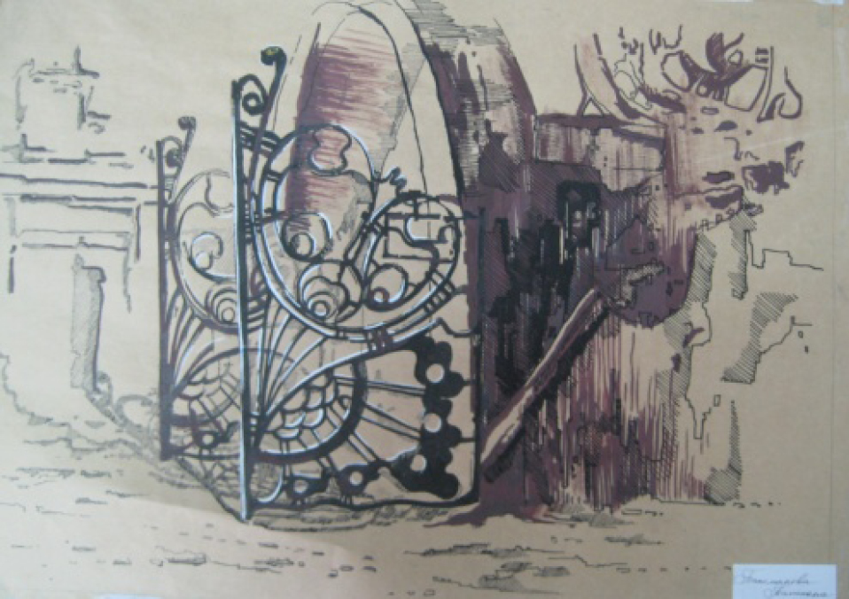 Рис.7. Зарисовка ворот дома А.П. Курлиной. Работа студента 2 курса