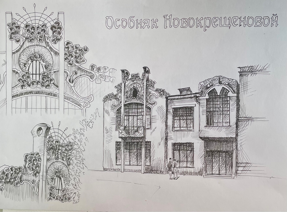 Рис. 8. Особняк Новокрещеновых. Арх. М. Квятковский. Работа студентки 2 курса А. Балацкой