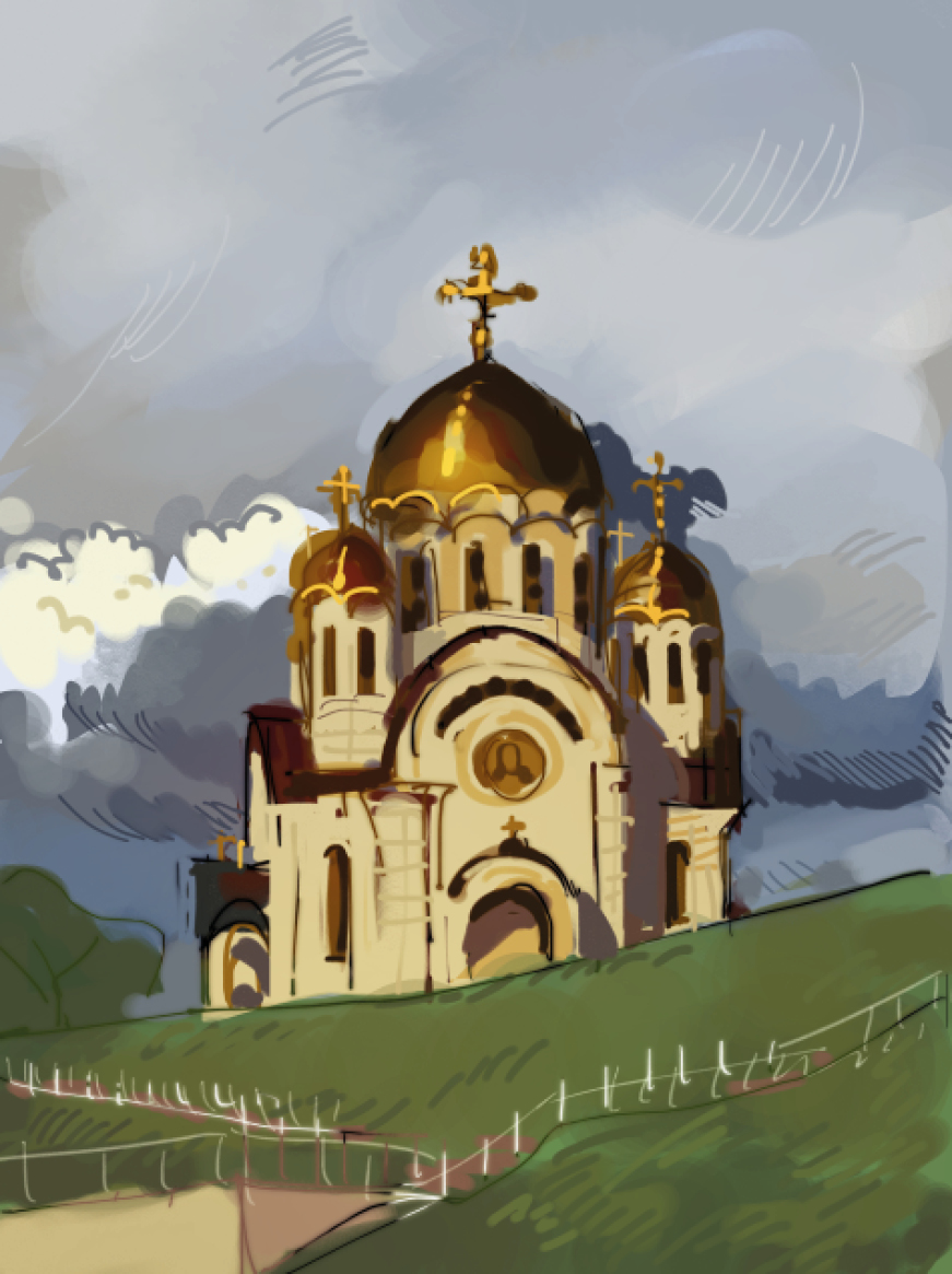Fig. 11. Church Collage of drawing and photograph of the image object. Work of a 2nd year student A. Dulevich