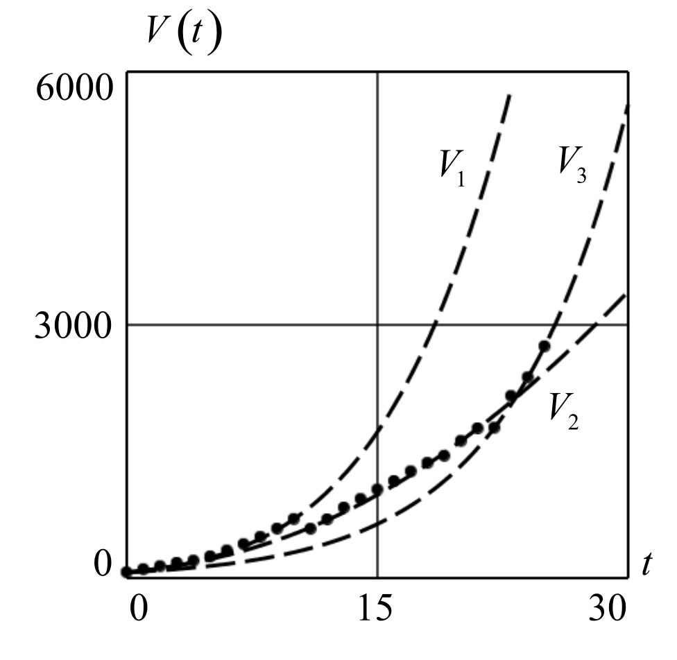 Таким образом, теоретическая кривая динамики развития ВРП может быть записана в виде
