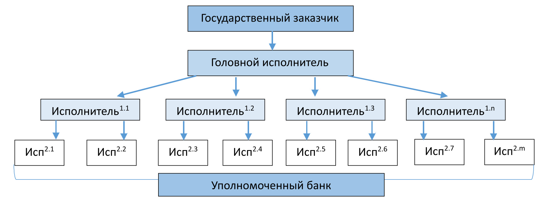 Со стороны государственного заказчика выступают такие ведомства как Минобороны России, Росгвардия, а также корпоративные заказчики в лице Госкорпораций «Росатом», «Ростех», «Роскосмос» и др., со стороны головного исполнителя – юридическое лицо, способное на договорной основе субподряда делегировать часть работ/услуг в рамках гособоронзаказа другим организационно-правовым структурам (исполнителям).