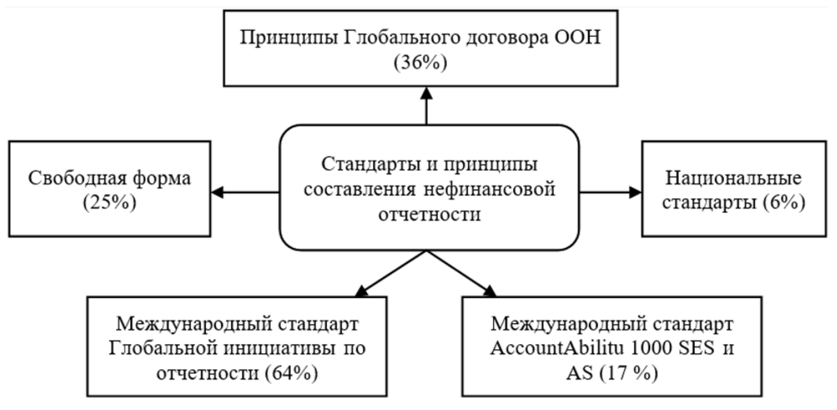 Рис. 3: Стандарты и принципы составления нефинансовой отчетности. Составлено автором по данным исследований Ассоциации менеджеров [6, 7].