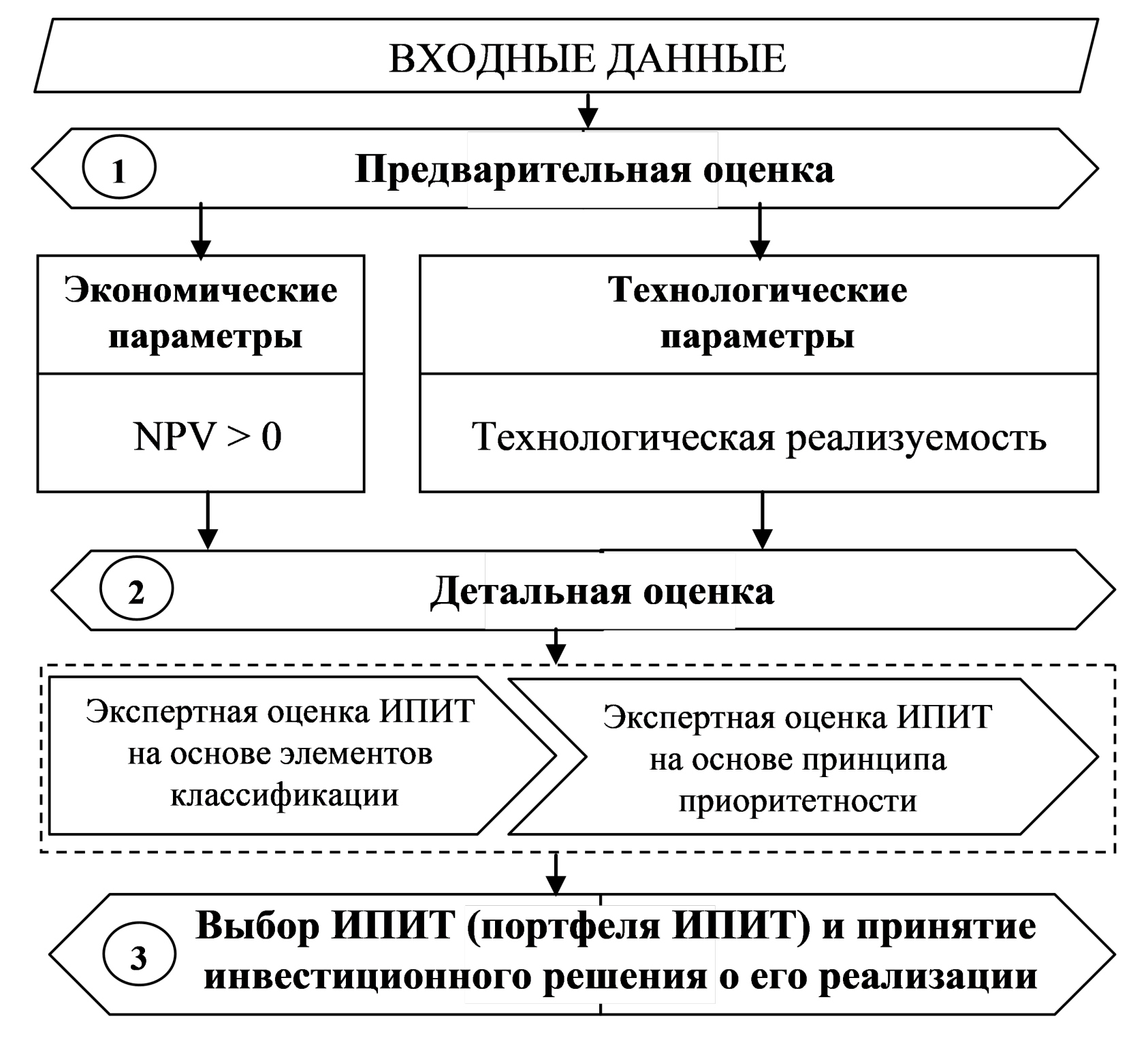 Предварительная стадия анализа ставит своей целью оценить перспективность реализации ИПИТ для нефтедобывающего предприятия, основываясь на ключевых показателях, которые демонстрируют потенциал получения как экономических, так и технологических выгод. В данном контексте, учитывая специфику предприятий нефтеиндустрии, основными критериями оценки стали технологическая осуществимость и — net present value (чистая приведенная стоимость). Это позволит адекватно оценить возможности внедрения инновационных технологий и их экономическую привлекательность.