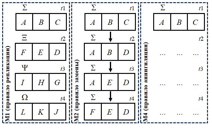 - (М1) объект S33 не выживает при мгновенной замене всех своих частей (правило репликации);