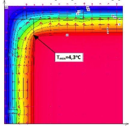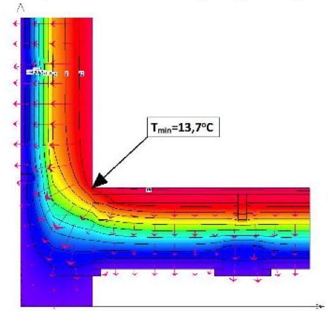 В большинстве домов температура на внутренней поверхности углового соединения наружной стены с цокольным перекрытием ниже, чем температура точки росы. В угловых участках пола некоторых домов установлена даже минусовая температура на внутренней поверхности.