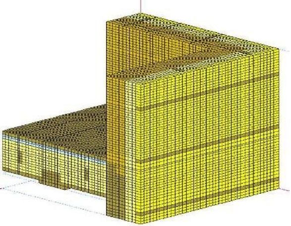 Introduction. The territory of the Republic of Sakha (Yakutia) is characterised by extreme climatic conditions with outdoor temperatures below -40 °C lasingg 50-60 days and the presence of permafrost soils. In these conditions, a multilayer wall structure with thermal insulation constructed from mineral wool slabs and a vented facade are used to provide thermal protection for buildings with load-bearing walls built from MHM-panels. The surface of the enclosing buildings is typically the only factor taken into consideration by thermal engineers when making design decisions for exterior walls, basements, attics, and floor-to-floor ceilings in projects. However, the practice of building operation shows that the greatest heat losses occur through the junctions of the basement floor with the outer and inner walls, as well as through the corner joints of the outer walls.