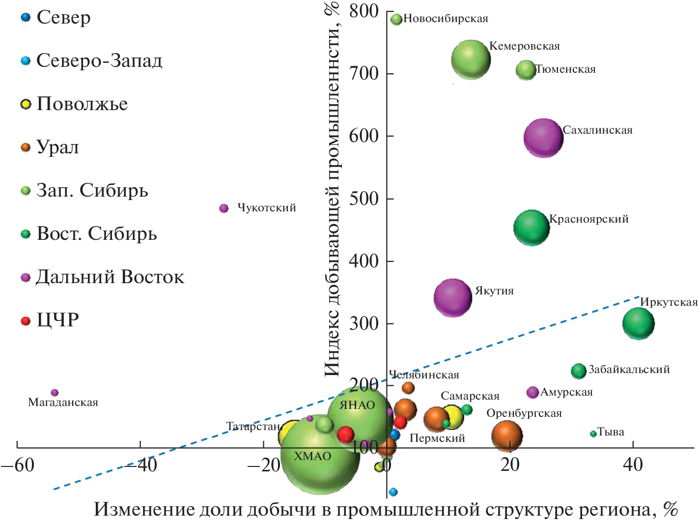 С экологических позиций оценены структурные изменения в промышленности российских регионов за 2005–2019 гг. Уменьшение доли добывающей индустрии и доли опасных видов деятельности в обрабатывающей промышленности рассматривалось как экологически прогрессивное изменение региональной промышленной структуры (ее экологизация), а противоположное изменение – как деэкологизация. Абсолютное большинство основных добывающих регионов страны увеличили добычу минеральных ресурсов, при этом в половине из них она возросла более чем в 1.5 раза, а в четверти – более чем вдвое. Четко обозначился северо-восточный вектор развития добывающей промышленности страны, обусловливающий относительное смещение крупномасштабных воздействий на природу в Восточную Сибирь, на Дальний Восток, Европейский Север – на экологически значимые и легко ранимые ландшафты криолитозоны, а также на шельфовые области. Количество регионов, где доля добычи в выпуске промышленной продукции превышает 50%, увеличилось с 9 до 14. В 2/5 российских регионов заметно увеличилась доля экологически опасных отраслей в обрабатывающем секторе промышленности. В регионах, где природоемкая добыча существенно сокращается (ХМАО, Татарстан), появляются первопередельные отрасли обрабатывающей индустрии, также не отличающиеся экологичностью. Лишь в Белгородской, Калининградской и Мурманской областях экологичнее стали и промышленные структуры в целом, и их обрабатывающие секторы. Усилились межрегиональные различия по уровню экологичности промышленных структур. Трудности методического и информационного характера нe позволили установить взаимосвязи между структурными изменениями в промышленности российских регионов и динамикой воздействий на природные компоненты.