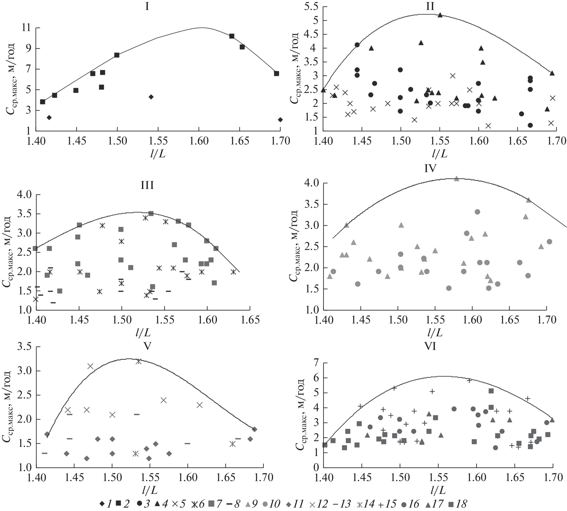 The article analyzes the patterns of riverbanks erosion of medium and large rivers of the Ob−Irtysh rivers’ basin. They have a real and potential threat. The territory in different parts differs in the regime of water and sediment runoff under free and relatively homogeneous free conditions of channel formation (wide floodplains composed of sandy deposits). The increase in the order of rivers, which is an indirect indicator of their water content, leads to the activation and increase in the intensity of horizontal channel deformations. The geological and geomorphological conditions of channel formation (the width of the valley bottom and the influence of bedrock banks), along with hydroclimatic factors, affect the rate of channel displacement and their re-formation. According to the conditions of river bank erosion, seven regions are distinguished in the Ob−Irtysh basin, each of which is characterized by different intensities of channel deformations and hydrological and morphological dependences that connect their indicators (rate and length of riverbanks erosion fronts) with the channel and water content of the flow. The characteristics of bank erosion (rate and the length of the erosion front) depend on the shape of the channels, which determines the hydraulic characteristics of the flow. Riverbanks erosion rates increase with an increase in the degree of development of the meanders. The water content of the river and decreases in the branches due to the dispersal of the runoff. The washout front, ceteris paribus, is longer for flat bends. The bedrock banks recede mainly due to the development of landslides and scree, provoked by the impact of the flow on them.