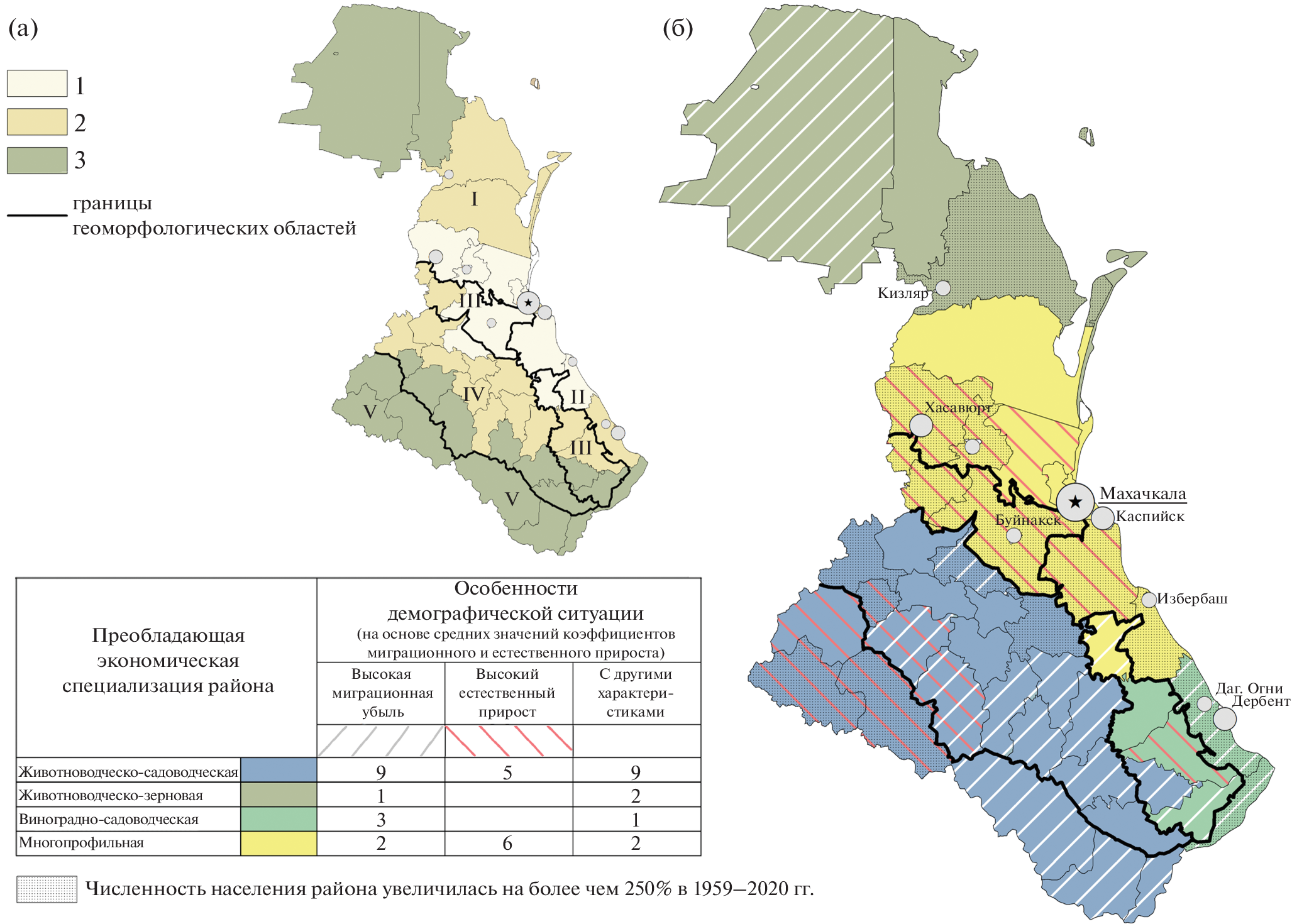 The article considers the post-Soviet development of rural Dagestan. The research is based on microscale municipal socioeconomic statistical data in the context of settlements, field observations and the results of in-depth and expert interviews conducted by the authors during three expeditions to the Republic of Dagestan in 2020–2022. Transformation processes in mountainous territories occur under the simultaneous conditions of natural-geographical, central-peripheral factors of transformation and demographic factors. Incomplete demographic transition combined with the increased role of ethnic traditionalism slow down the processes of modernization of society. Along with the features typical for other regions of Russia (for example, the reduction of workplaces in the agricultural sector, rural depopulation, increased population mobility), the transformation of Dagestan rural areas has its own characteristics. The territorial combination of these regional factors results in a significant variety of types of rural areas at the municipal level. For example, the orographic multiplicity of Dagestan significantly complicates the typical central-peripheral picture of the lowland regions of Russia. Along with suburban, there are two more types of stable rural municipalities—foothill areas that allow you to engage in both agriculture and other activities and areas in the mid-mountain basins, in which the migration outflow of residents is compensated by an inflow from mountain villages. The article presents the author’s version of the typologization of rural Dagestan based on the basic criteria—the position of the district in the “center–periphery” system and belonging to the geomorphological region. The selected subtypes are combined into the main types, considering the economic and demographic characteristics of the territory. Scenarios of the socioeconomic transformation of Dagestan rural areas in the post-Soviet period are studied on the key districts for different physiographic macro-regions of Dagestan: Akhtynsky, Botlikhsky, Karabudakhkentsky, Kizlyarsky, and Tsumadinsky. Trajectories of transformation of Dagestan rural territories in the post-Soviet period are formulated: shrinkage, inertial development, and modernization.