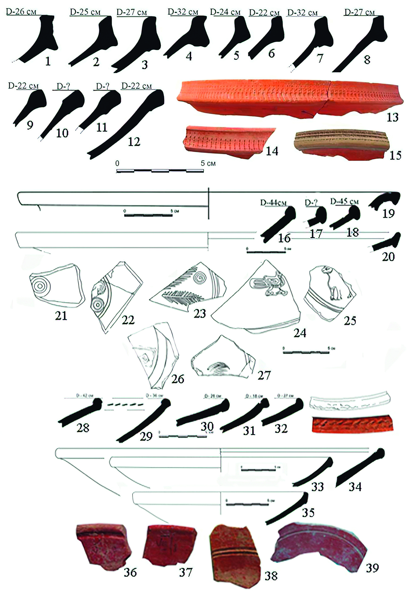 В качестве инструмента для анализа было решено избрать каталог-определитель, который позволяет осуществлять атрибуцию собираемых фрагментов даже археологам, которые ранее не сталкивались с керамикой сиро-палестинского региона [4]. Этот подход позволил сделать важные историко-культурные и хронологические наблюдения. Изложим их вкратце, добавив материалы, полученные после выхода в свет указанного каталога.