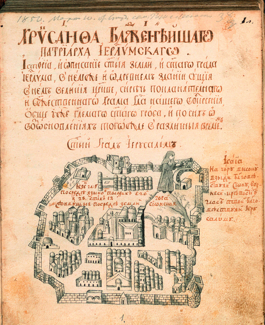 Ил. 2. План Иерусалима из сочинения Хрисанфа Нотары «История и описание Святой Земли и Святого Града Иерусалима». ОР РНБ. Ф. 588 (М. П. Погодин). Оп. 3. № 1546. Л. 1