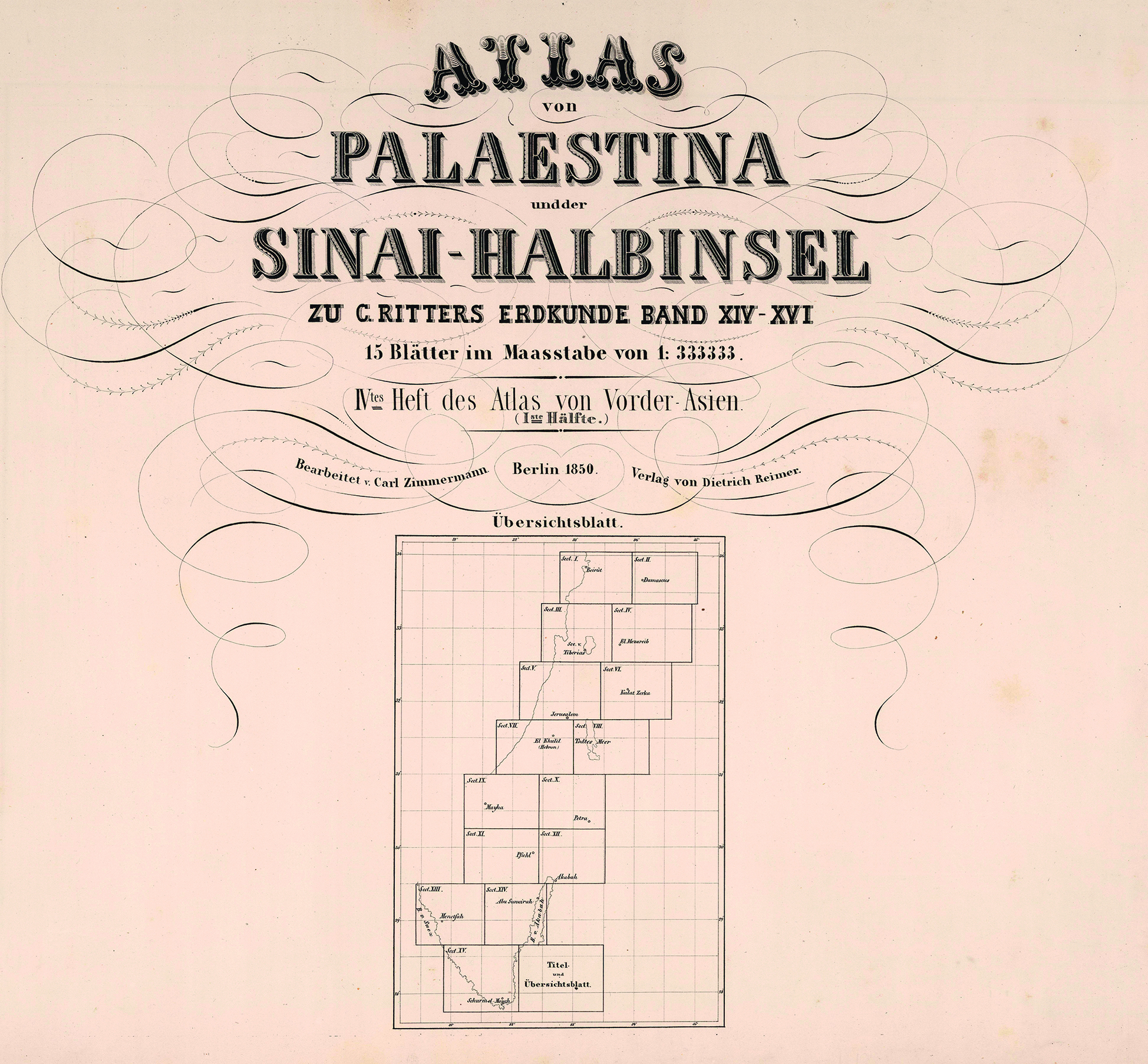 Ил. 6. Атлас Палестины и Синайского полуострова, изданный Г. Раймером как приложение для «Географии» К. Риттера. Берлин, 1850 г. (при построении карты были использованы сведения Е. Шульца)
