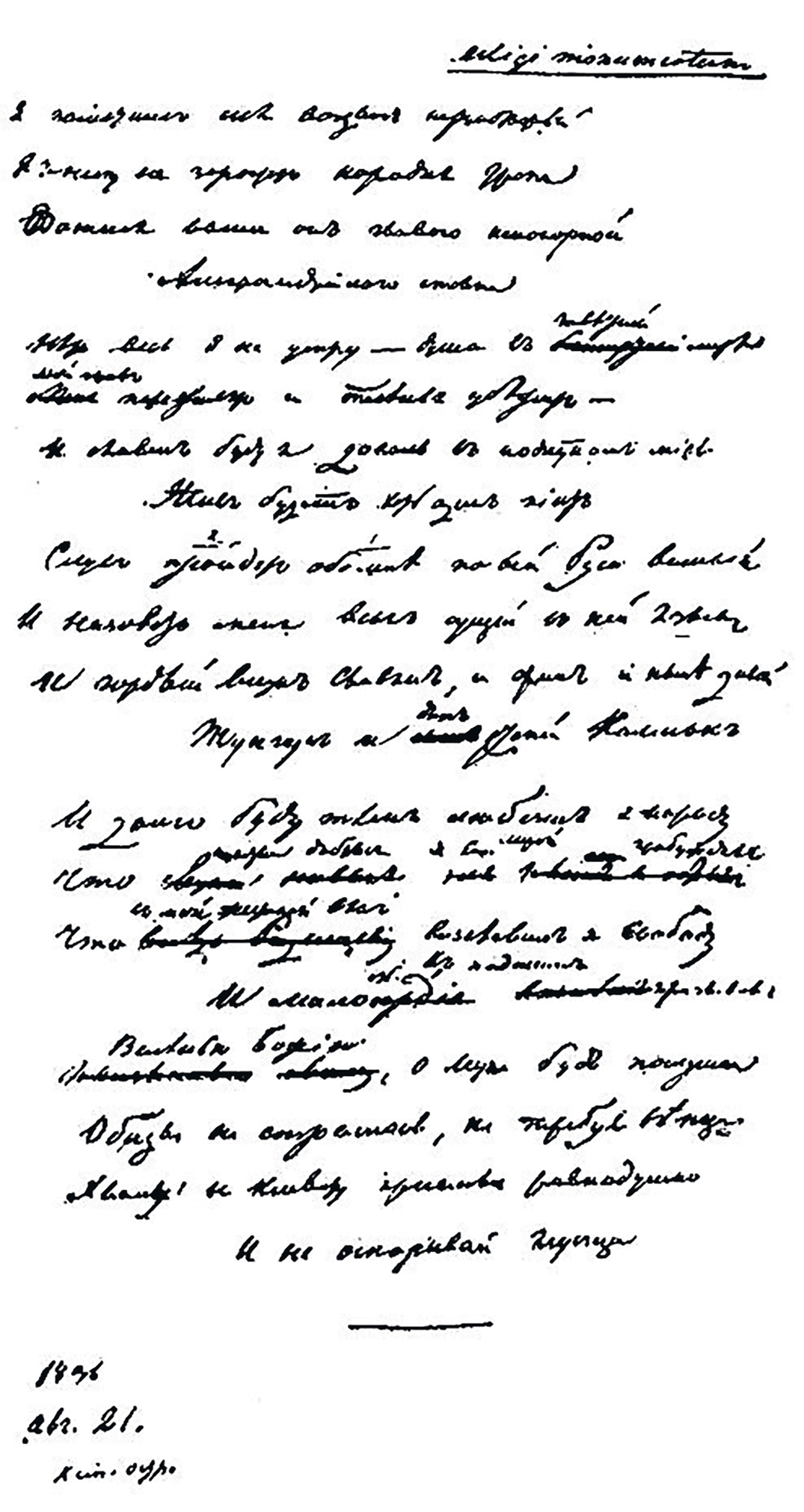 Ил. 2. Рукопись пушкинского «Памятника». «Русский Архив». 1881. Кн. I. № 1