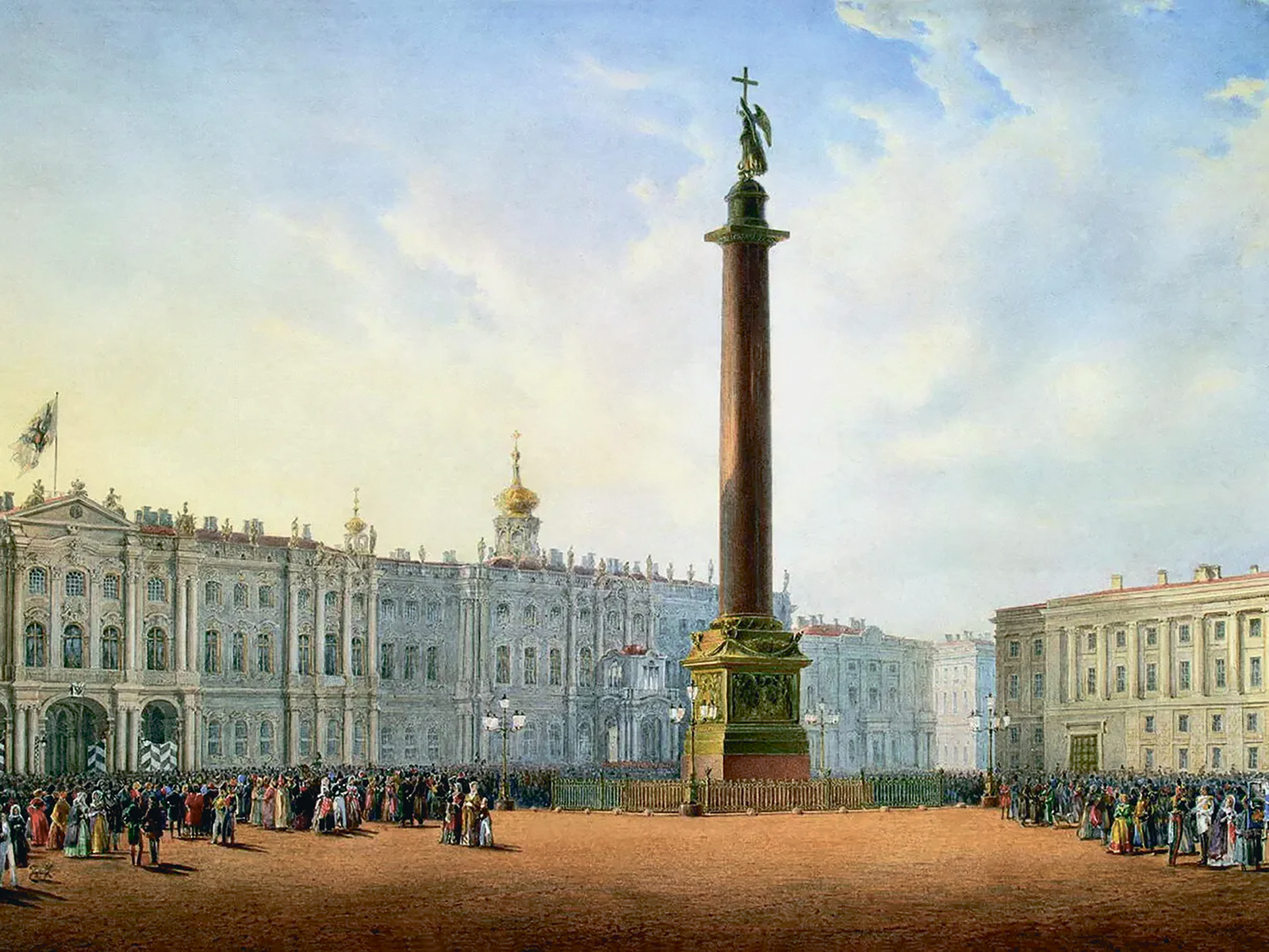 Ил. 3. Садовников В.С. Вид Дворцовой площади и Зимнего дворца в Санкт-Петербурге (фрагмент). 1840-е гг. Государственный Эрмитаж