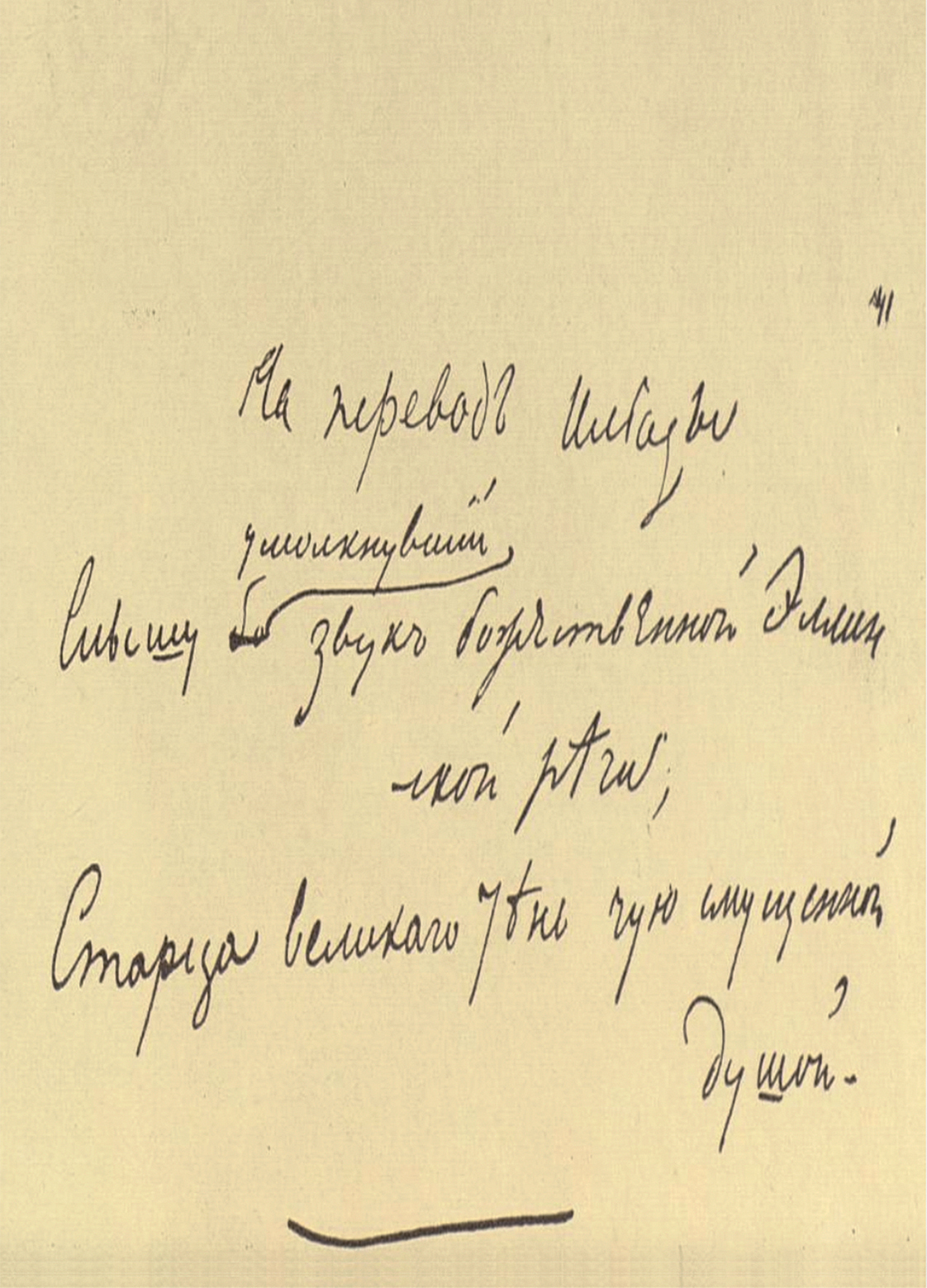 Ил. 5. Рукопись А.С. Пушкина «На перевод Илиады». «Рукописи Пушкина. I. Автографы Пушкинского музея Императорского Александровского лицея». Вып. 1. Издание кн. Олега Константиновича, СПб., 1911