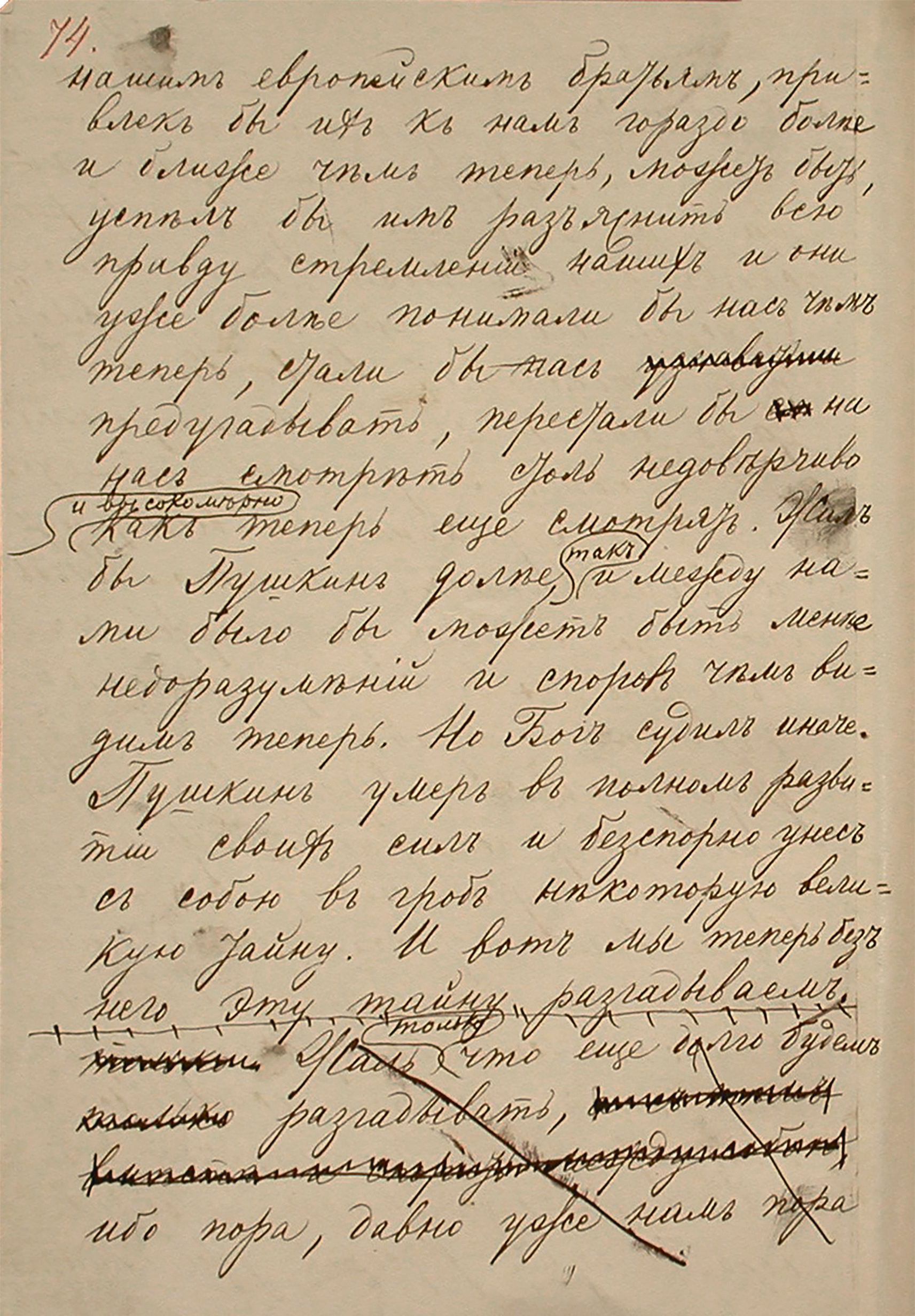 3. Fig. 2. The last page of the Pushkin speech by F.M. Dostoevsky. Autograph. RGB. F. 93. I. 2. 15. L. 39 ob.